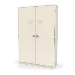 - Doors lock to keep contents secure and feature ID card slots for quick identification
