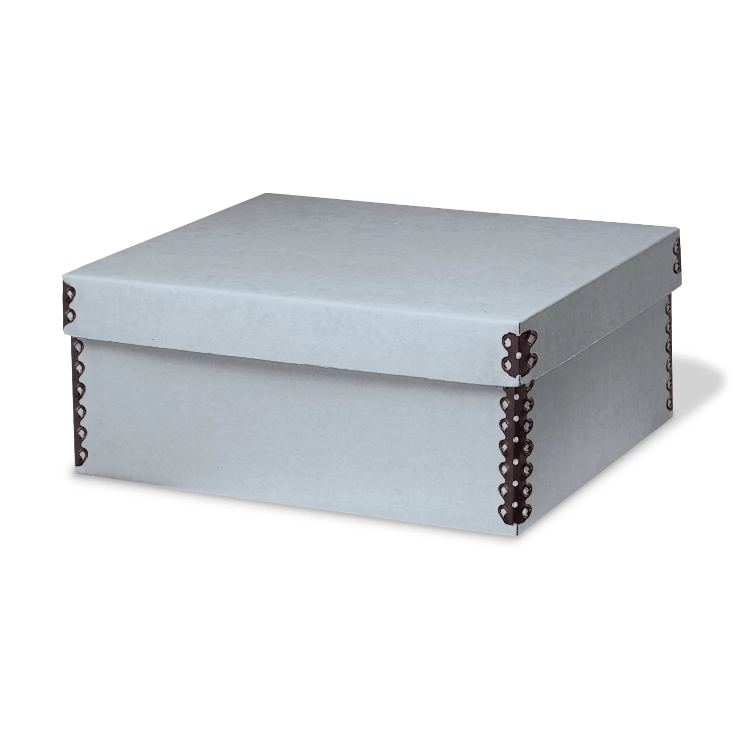 Our Gaylord Archival® Blue E-flute Shallow Lid Multipurpose Box with Metal Edges provides safe storage for documents, manuscripts, music scores, comic books and more. The shallow lid is easy to remove for fast access, and metal-reinforced edges add durability to the overall construction.