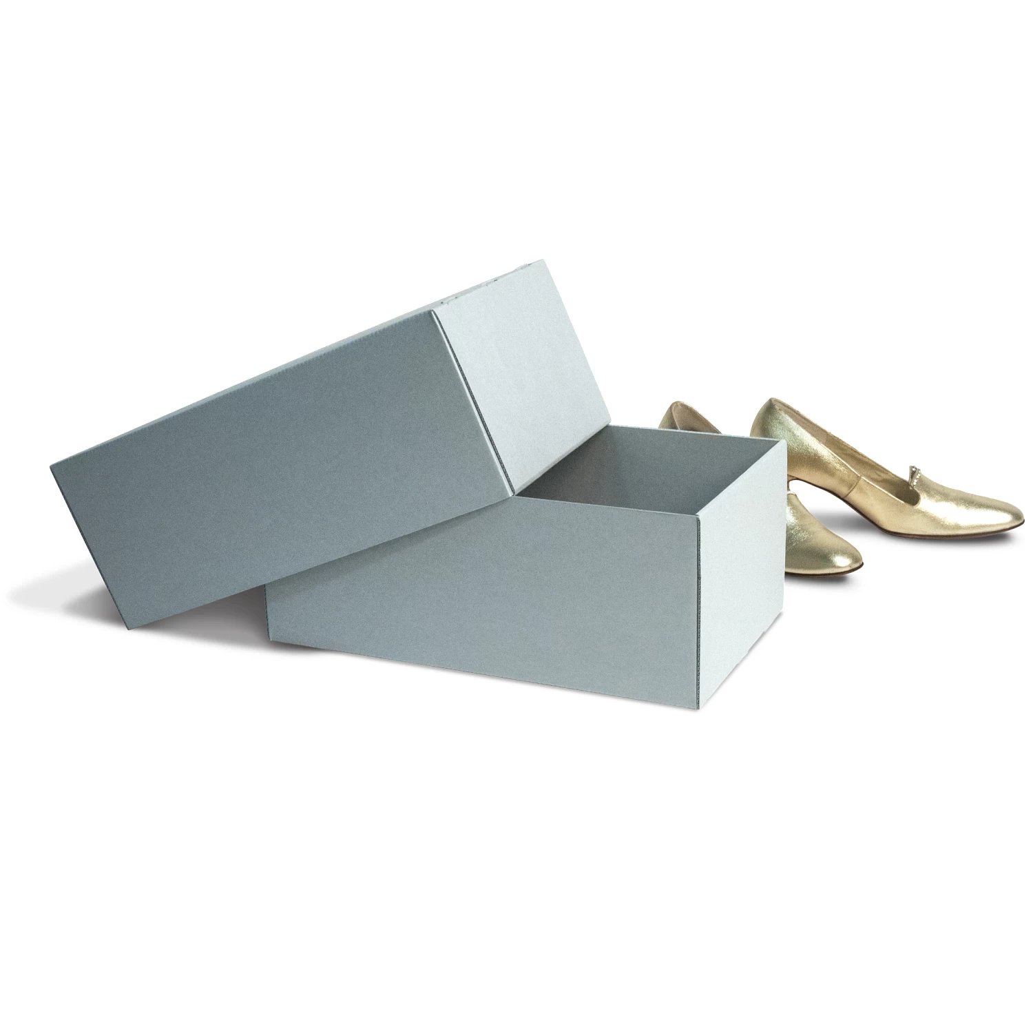 Our Gaylord Archival® Blue E-flute Shoes Box is designed specifically for shoes to keep them organized and easily accessible. Interleave and wrap contents with archival tissue (sold separately).