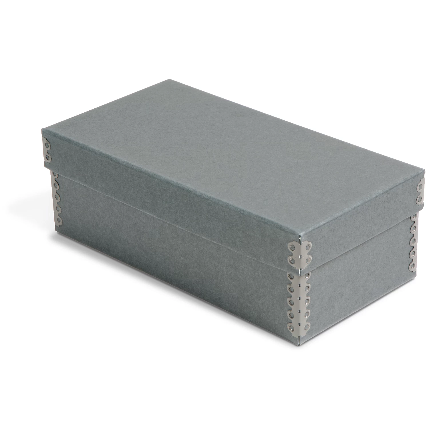 Use our Gaylord Archival® Blue/Grey Barrier Board Card File Box to organize your trading cards, catalog cards, envelopes or small artifacts. Metal edges on both the box and lid add stability and support.
