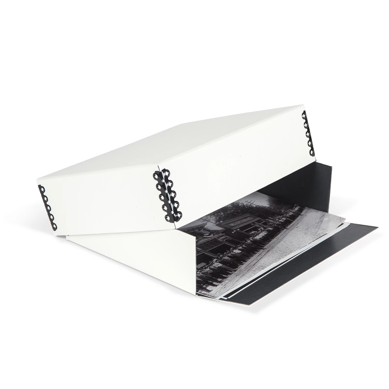 The Gaylord Archival® White Barrier Board Drop-Front Deep Lid Print Box provides safe long-term storage for prints, while ensuring easy slide-in, slide-out access. Metal edges protect the integrity of the box and add support.