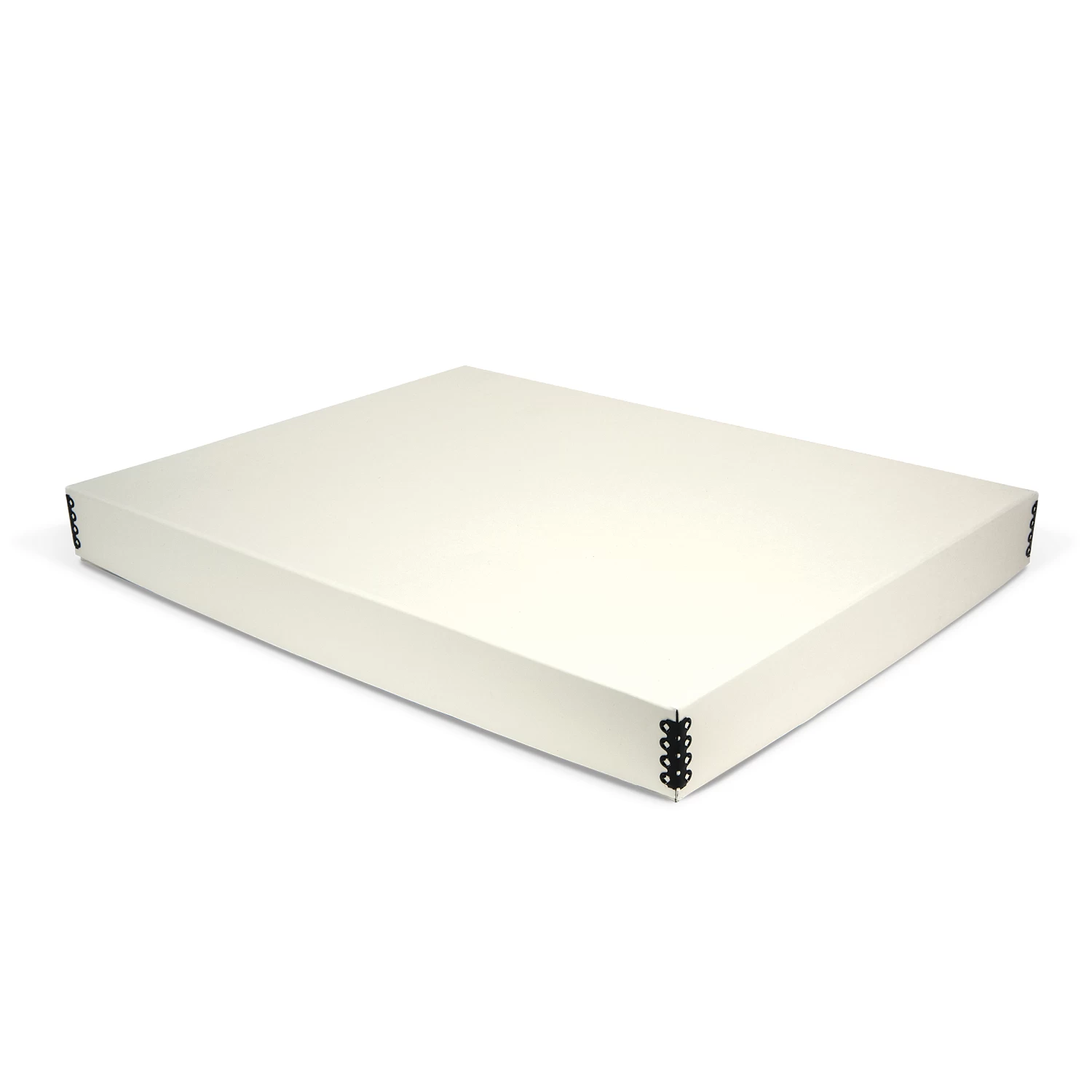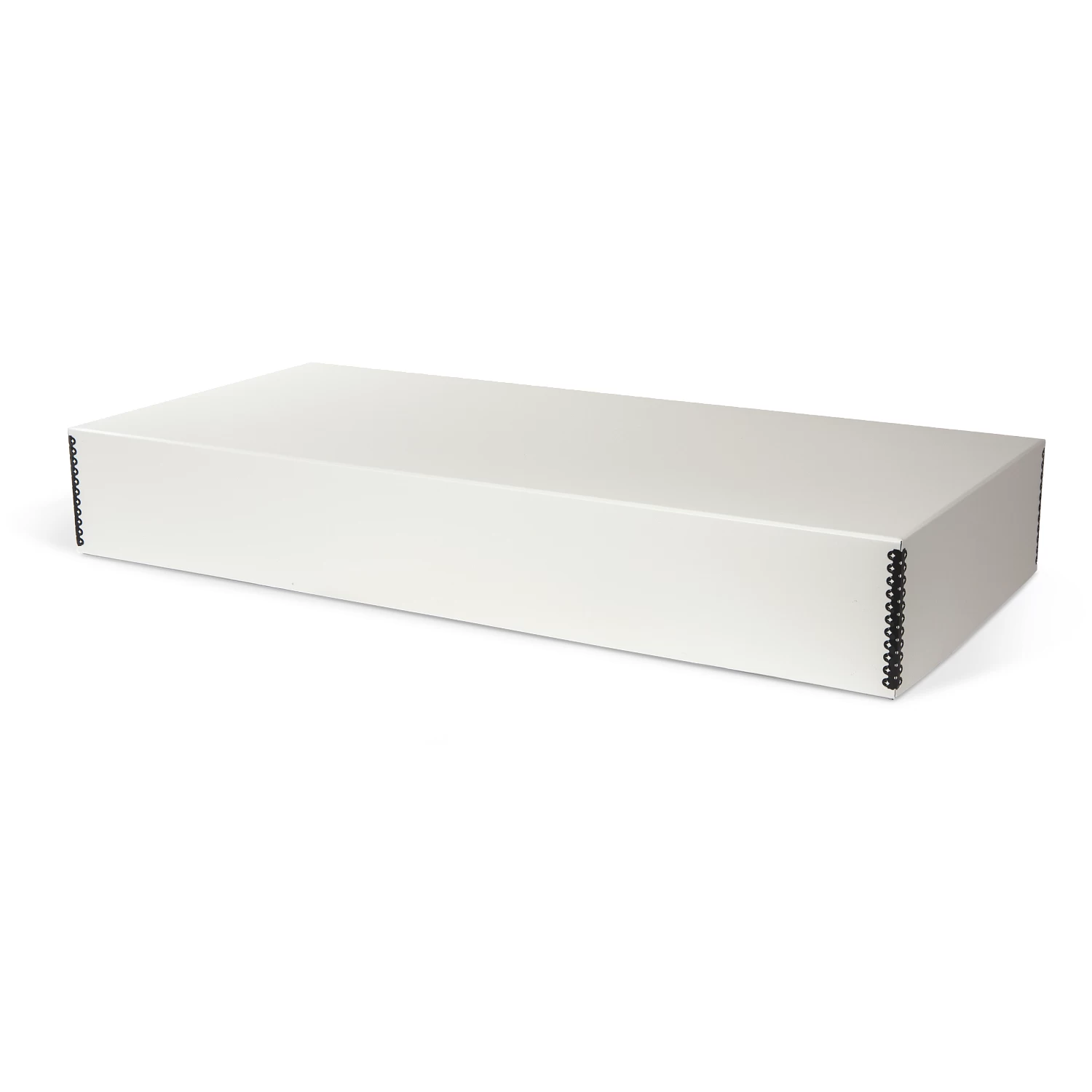 Protect and preserve gowns, quilts and costumes with our Gaylord Archival® White Barrier Board Textile & Costume Box. The standard front and deep lid make the box ideal for storing items that won’t need to be frequently accessed. Our DuraCoat acrylic coating protects against moisture, fingerprints and abrasion while black metal edges protect the integrity of the box and add support.