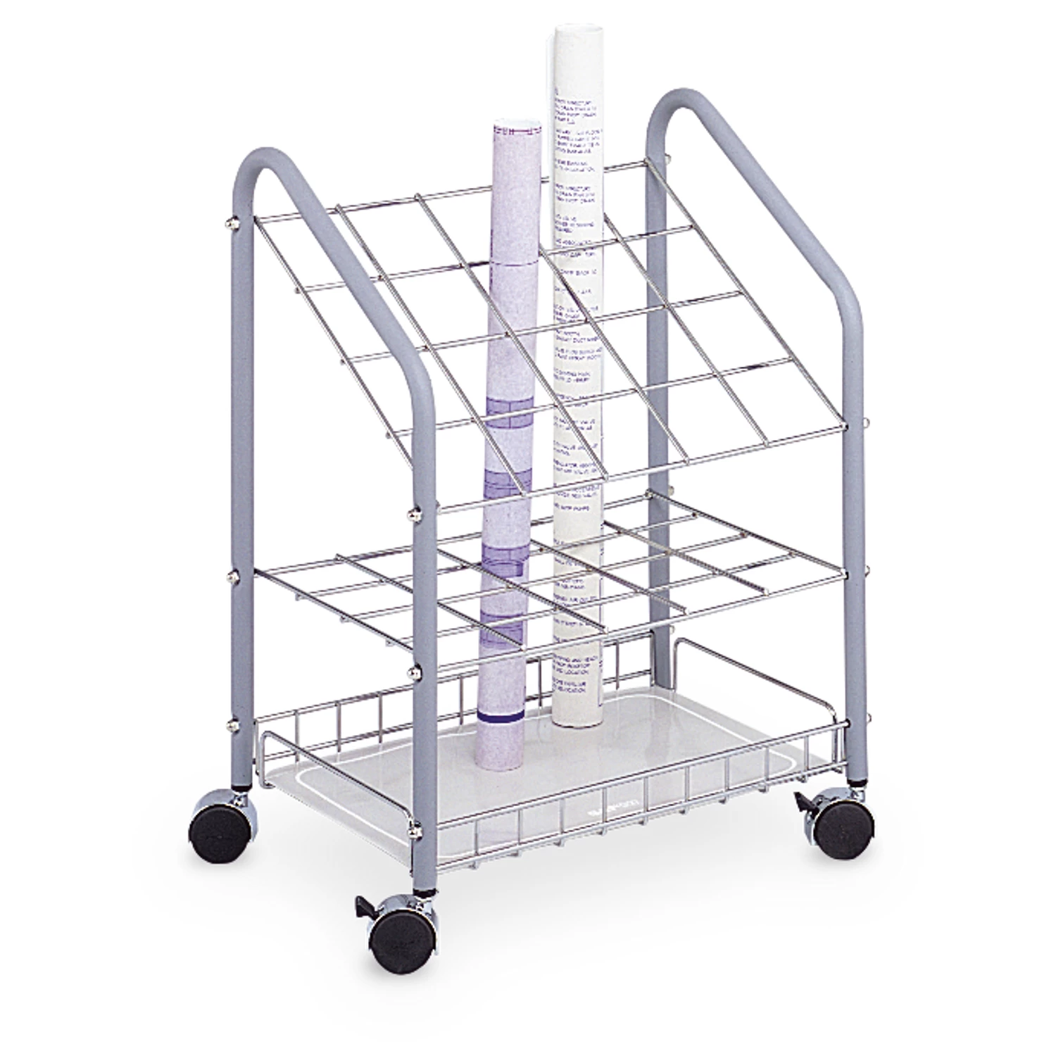 Safco® 20-Compartment Wire Mobile Roll Storage stores and transports your rolled documents, maps, blueprints or craft paper. The tiered 2 3/4 x 2 3/4″ compartments make it easy to remove contents.