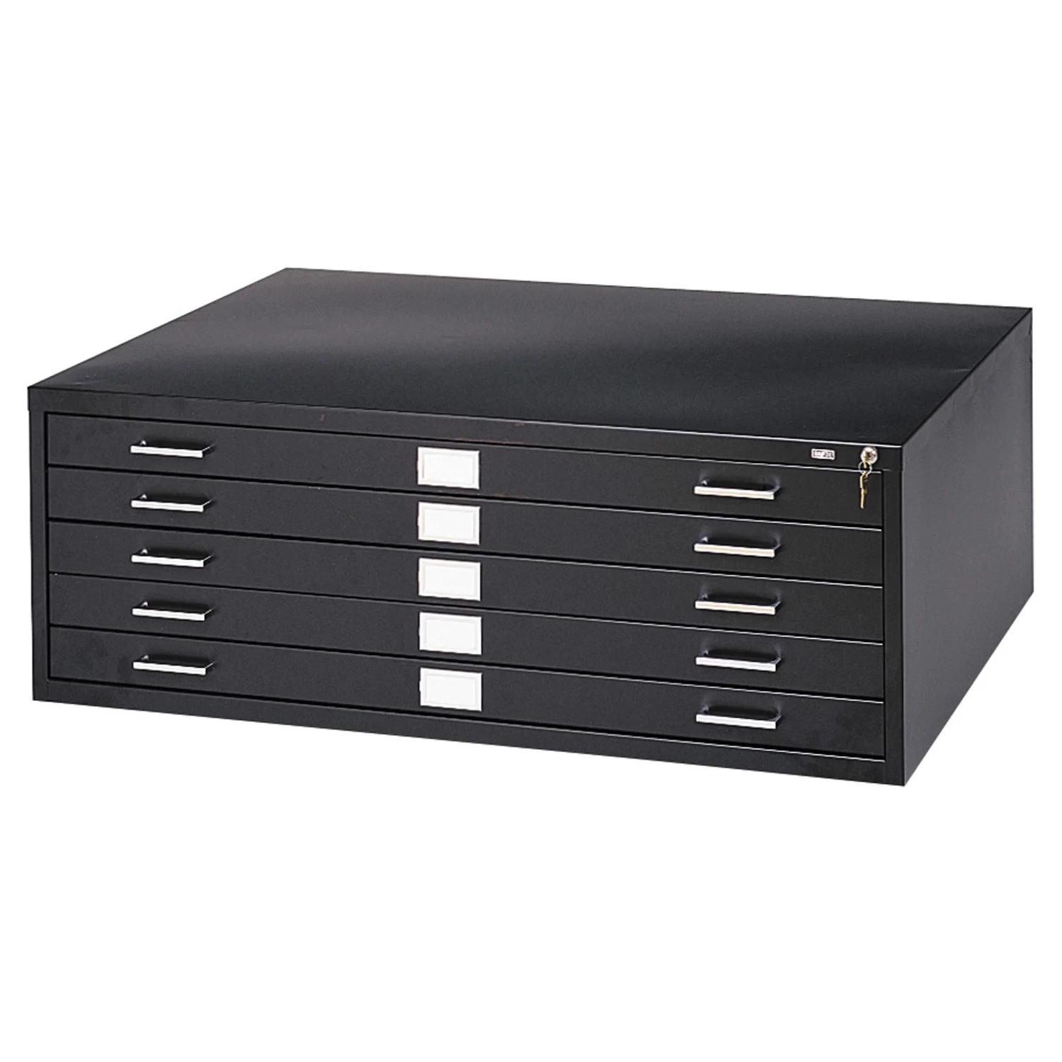 Protect a variety of flat media with the Safco® Horizontal 5-Drawer Flat File for 24 x 36″ Sheets. It features welded steel construction with double thick wraparound corners and sturdy inner frame supports for stacking strength. The powder-coated finish will not off-gas for safe archival storage. Drawers feature positive closures that keep them tightly shut, as well as courtesy stops that keep drawers from rolling when open.