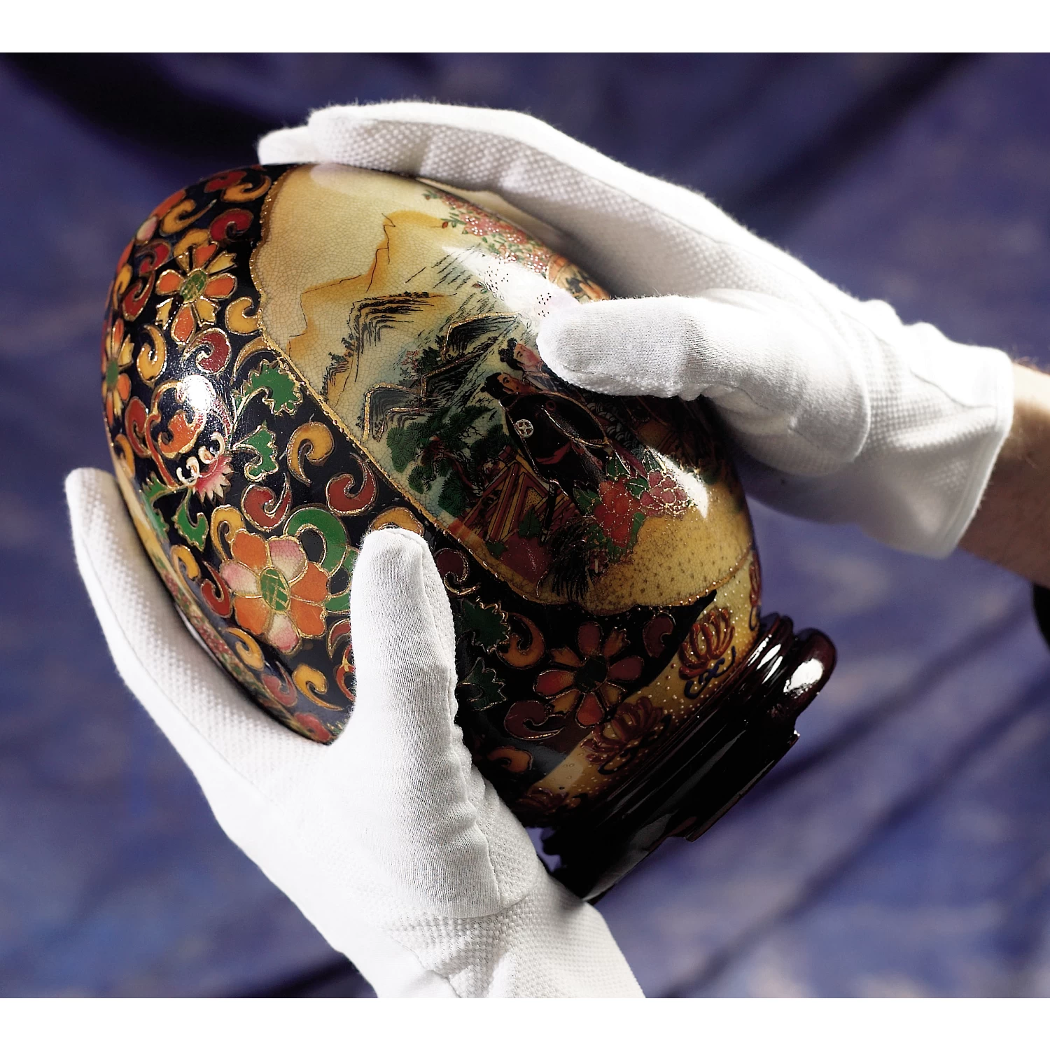 These Sure-Grip Cotton Gloves (12 Pairs) have nonslip vinyl nodules on the palms and fingers to prevent artifacts from slipping through your hands.