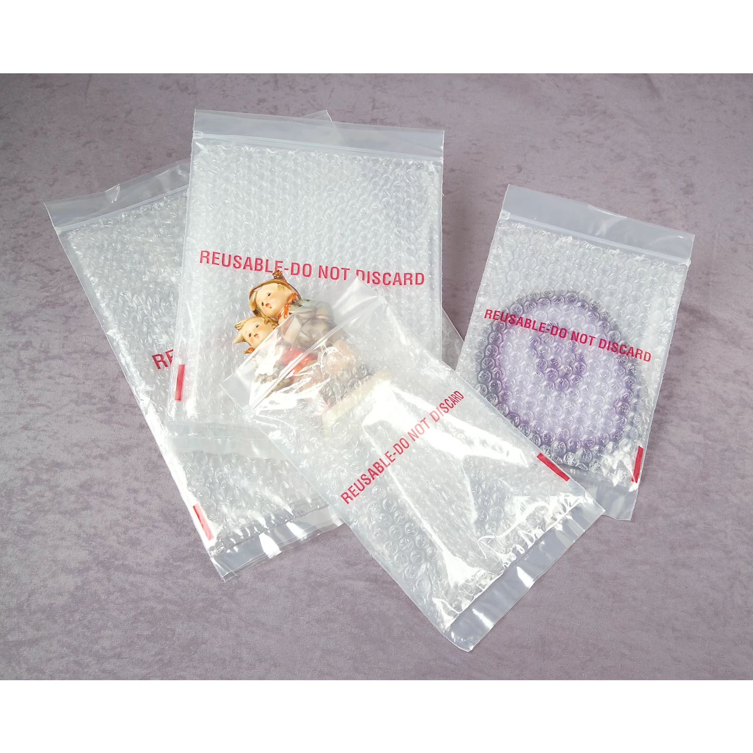 Zip-Top Bubble Bags (25-Pack) offer padded bubble protection when shipping fragile items. The reclosable bags are clearly marked “REUSABLE DO NOT DISCARD” to discourage waste.